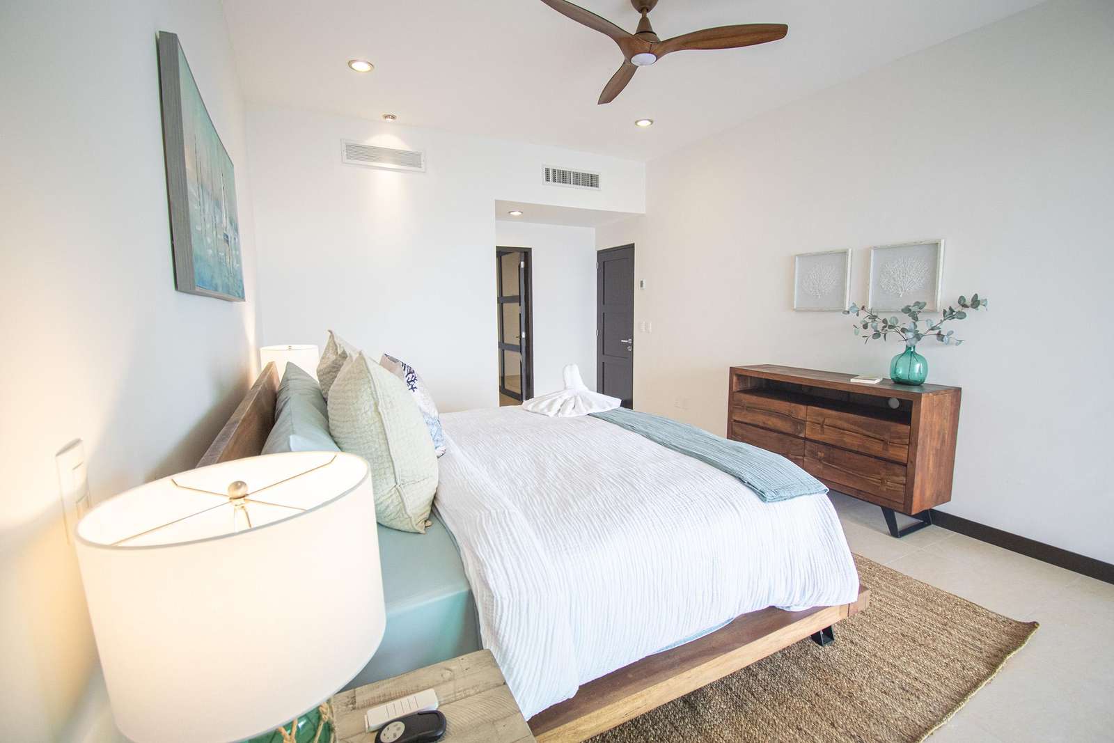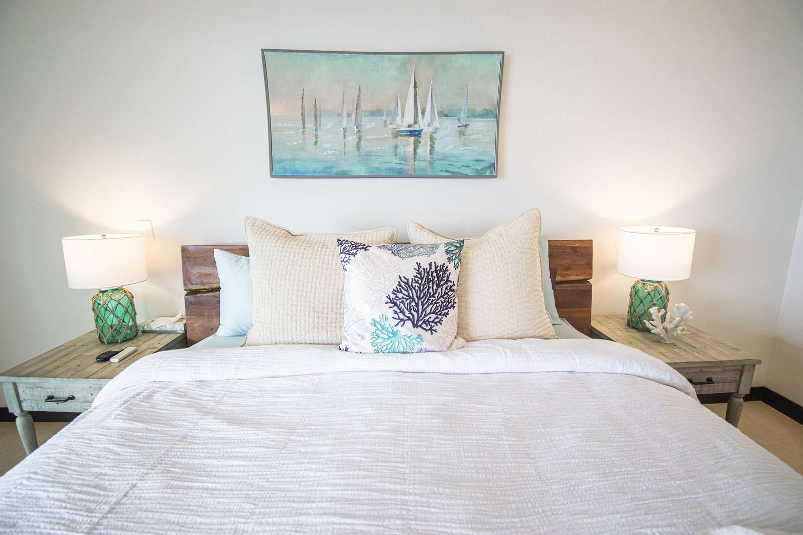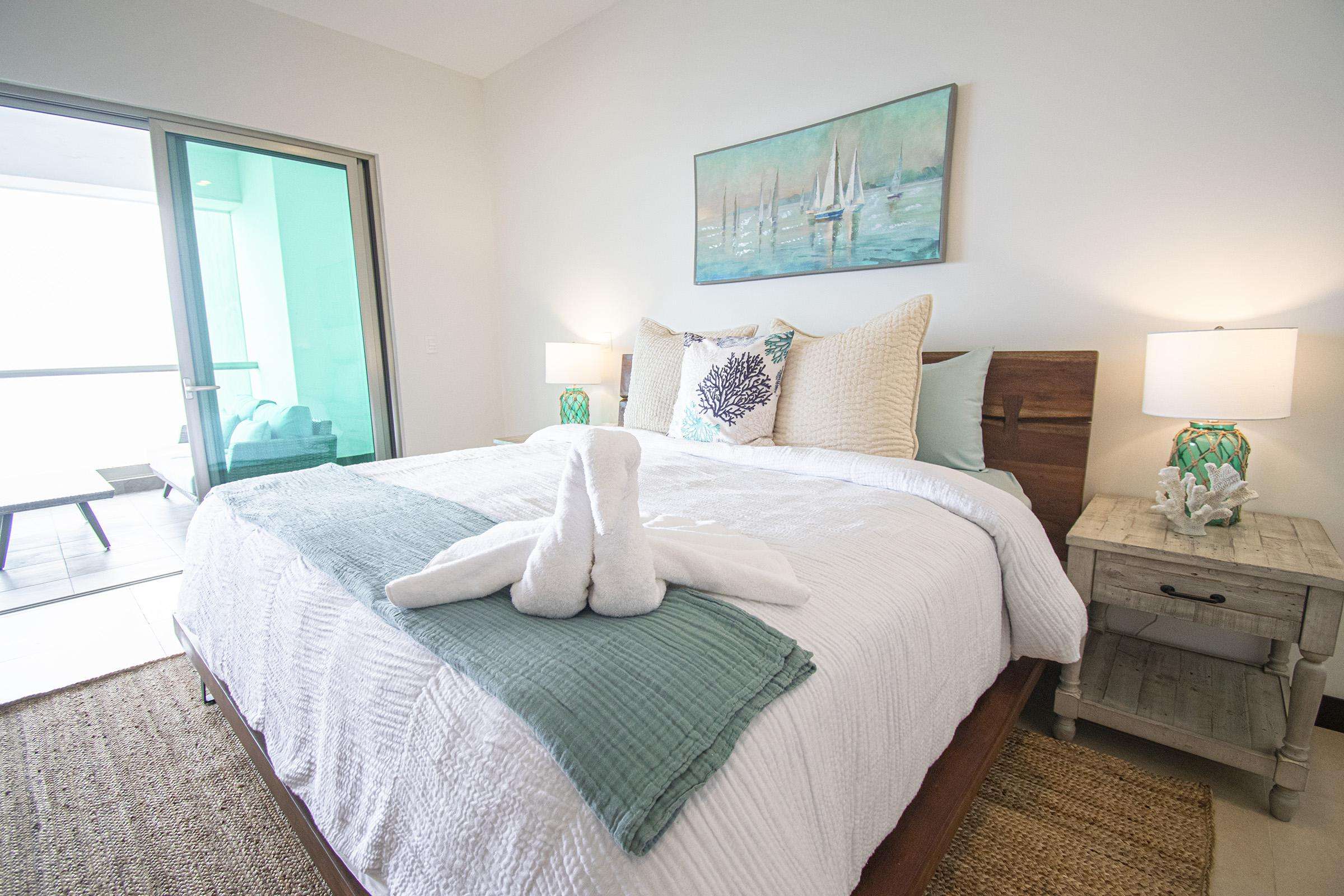Discover the tranquil, uninterrupted rest you crave in the well-appointed bedrooms. Fine linens and soft mattresses adorn King size beds in the master, Queen beds in each of the Guest Bedrooms. The spacious Master suite leads out to a charming balcony overlooking the azure sea.