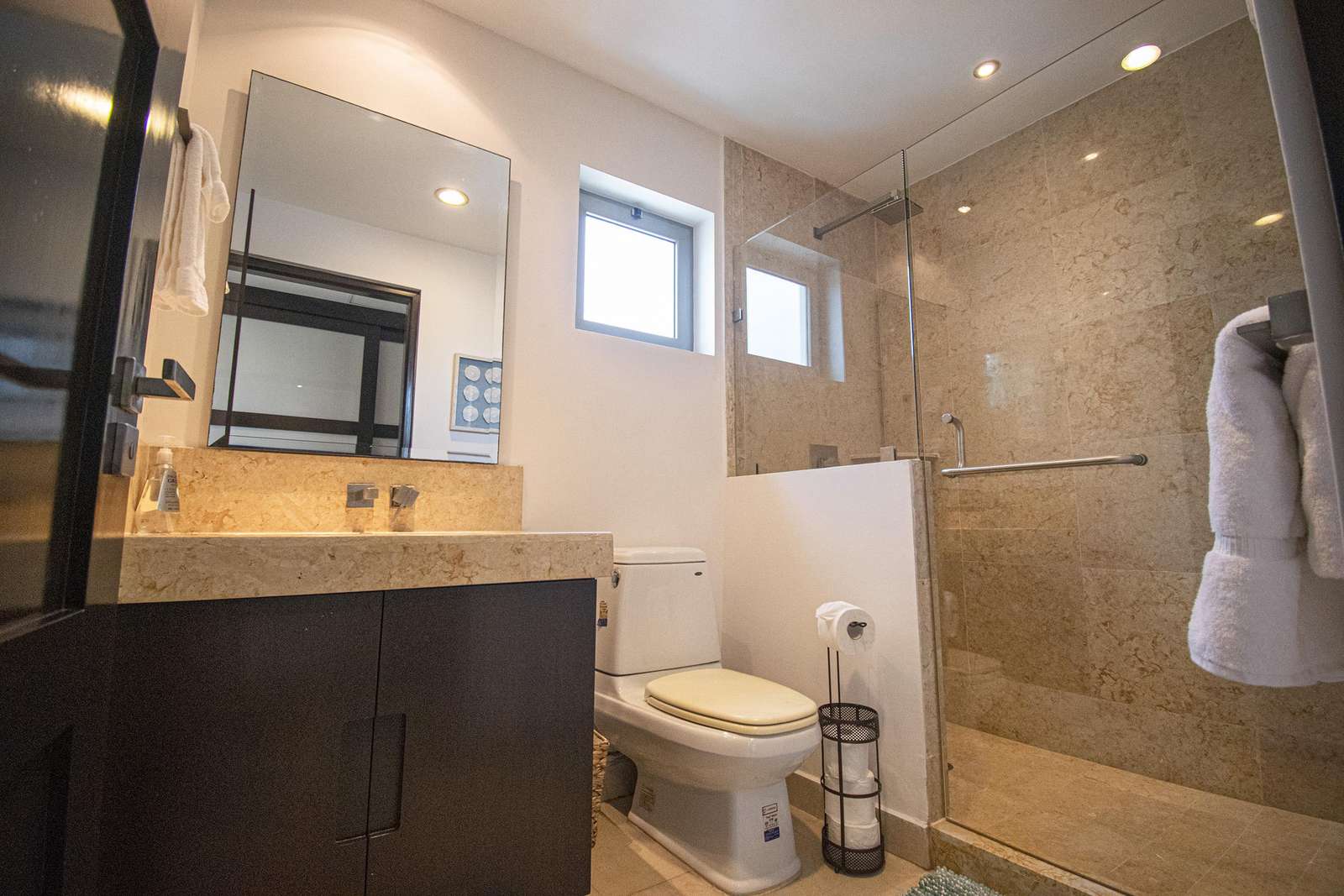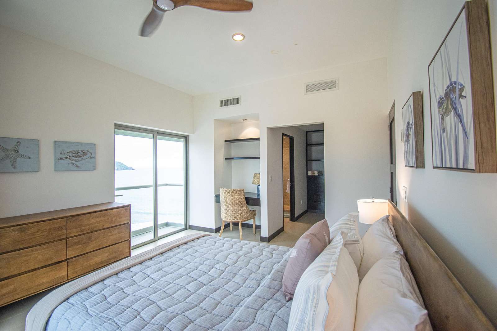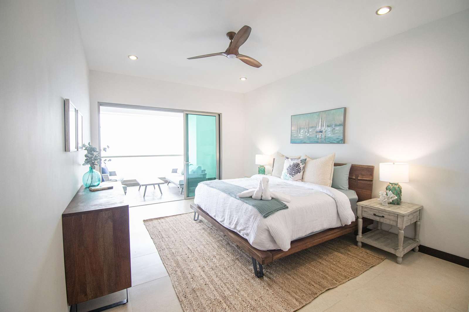 Discover the tranquil, uninterrupted rest you crave in the well-appointed bedrooms. Fine linens and soft mattresses adorn King size beds in the master, Queen beds in each of the Guest Bedrooms. The spacious Master suite leads out to a charming balcony overlooking the azure sea.