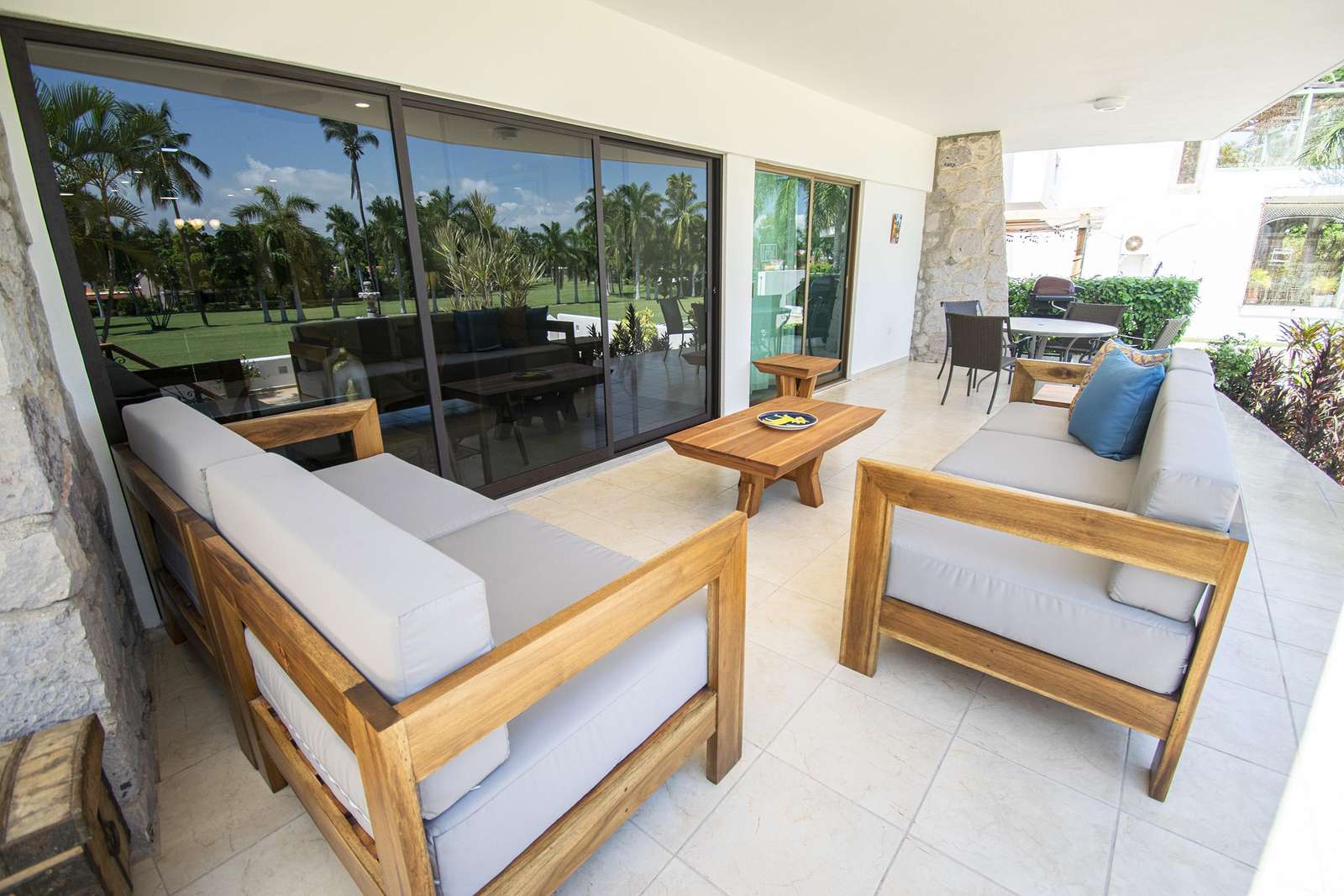 The Golf Course provides a magnificent view of your natural surroundings. The alfresco lifestyle is completed with a barbeque grill, as well as outdoor dining areas. Indoors, you will find a home entertainment system with satellite TV, Wi-Fi access and purified water.