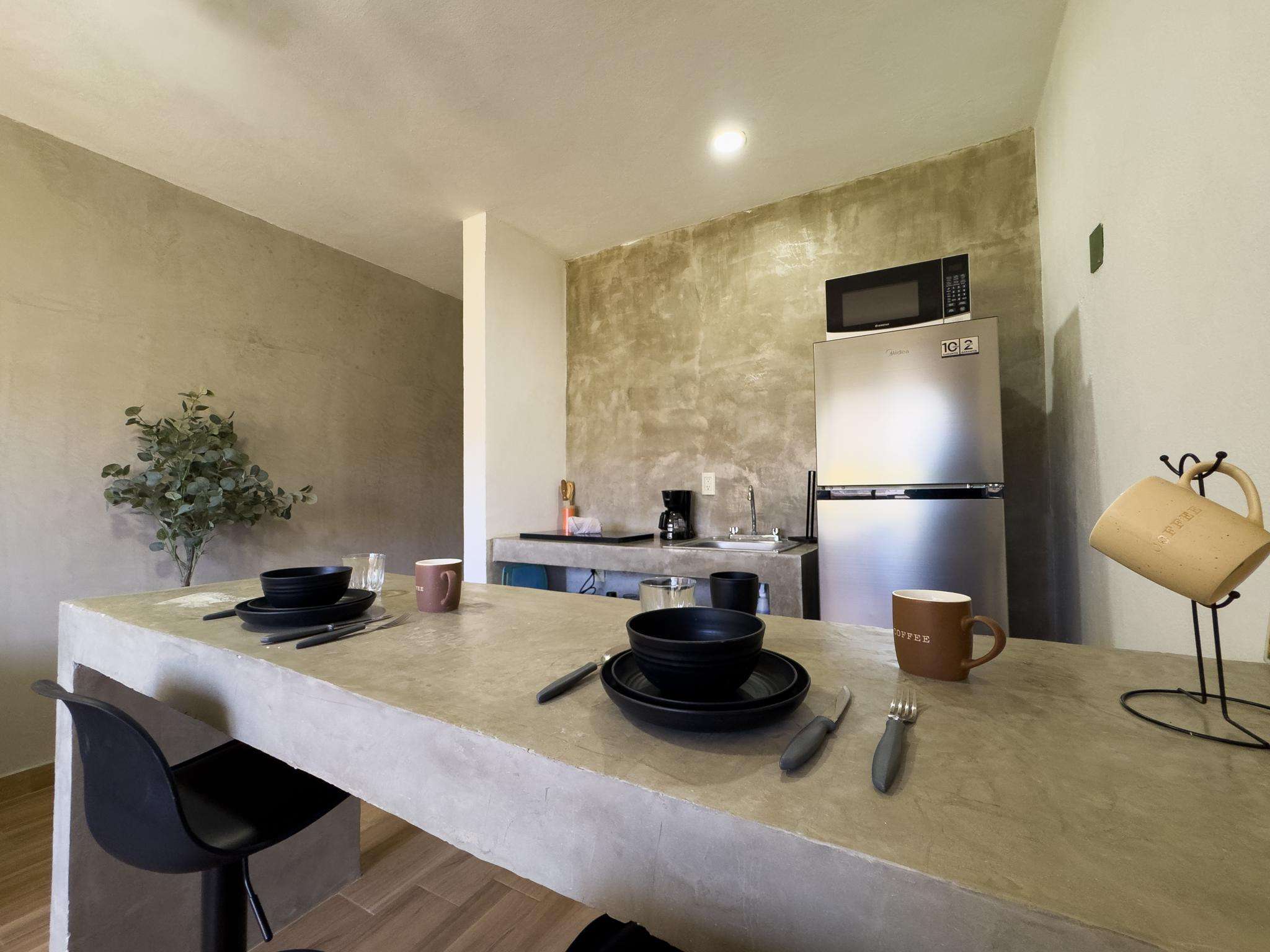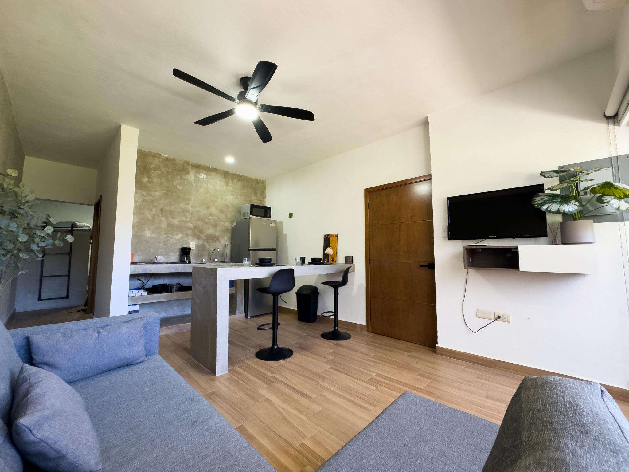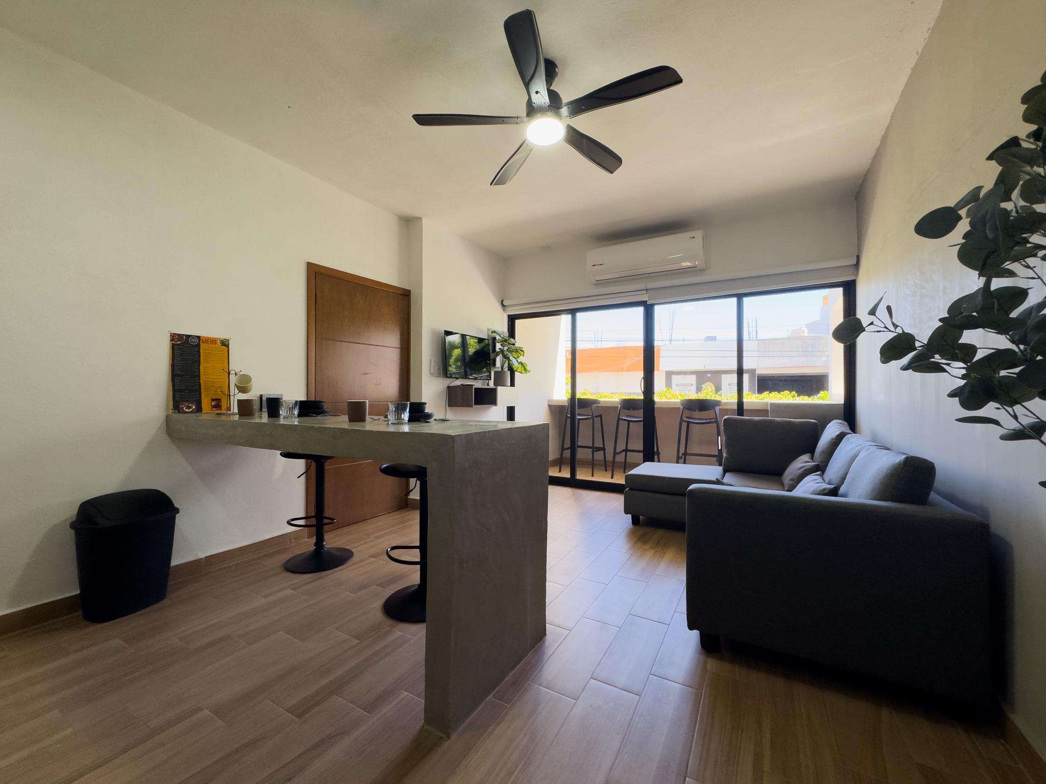 Charming 1-bedroom 2nd floor apartment in Zona Dorada, 1/2 block from the beach. Enjoy modern comforts, vibrant local culture, and easy access to restaurants, entertainment, shopping, water sports and eco-tourism adventures.