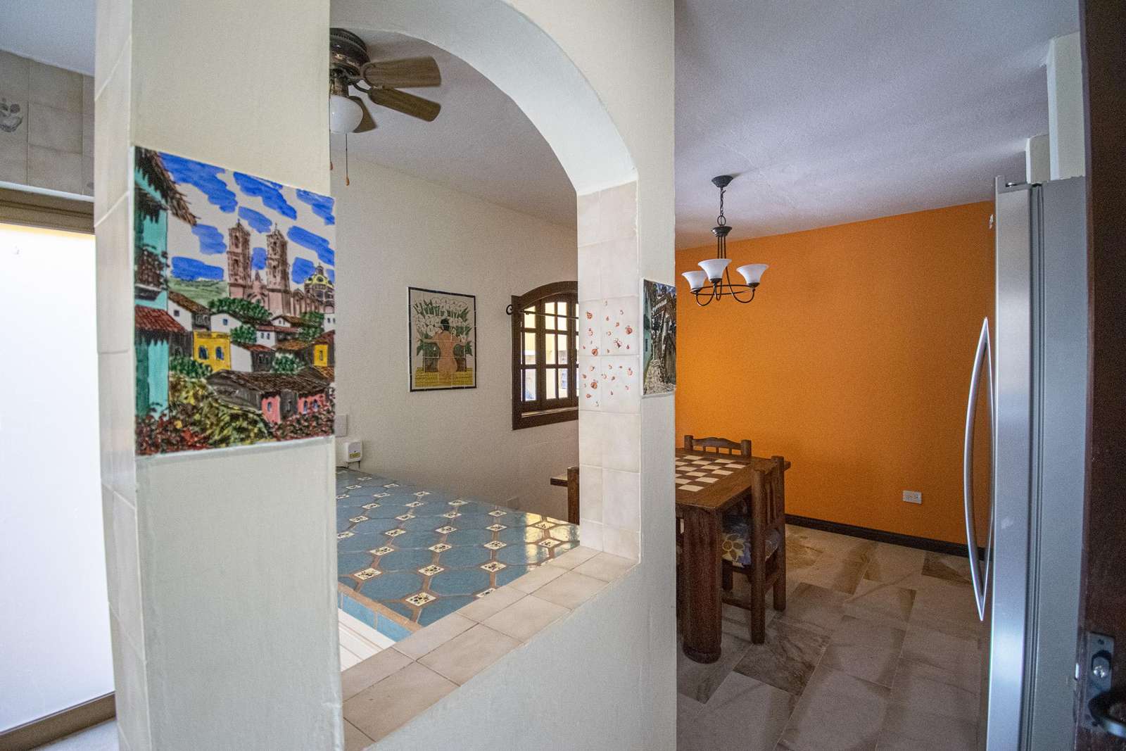 At Hacienda Conde de Oviedo you will find comfortable furnishings, classic Mexican tiles, beautiful fixtures, original artwork and antiques that have been combined with authentic amenities to offer both stylish design and warmth to this classic Mexican Hacienda. The living and dining areas maximize the indoor/alfresco lifestyle by providing easy access to the deck, and a kitchen that comes fully equipped with lots of counter space.