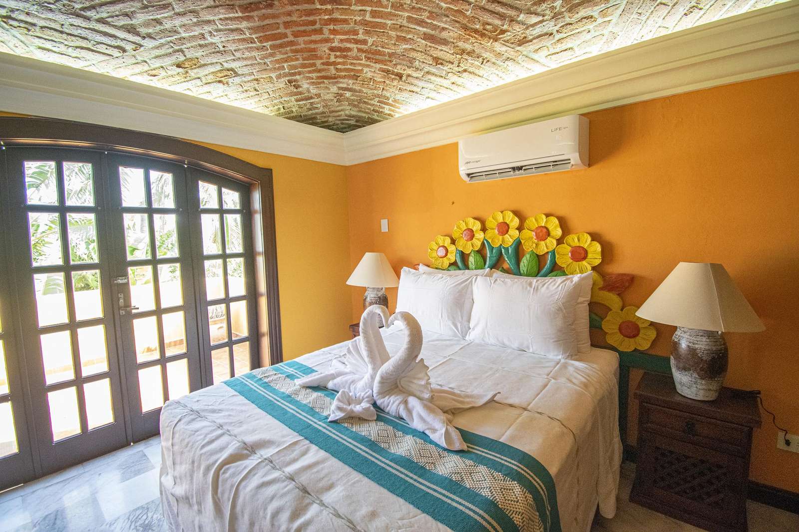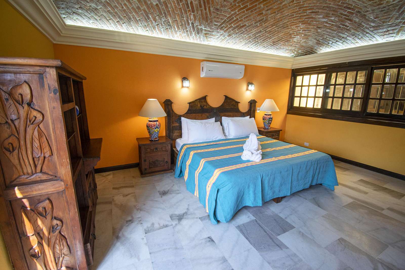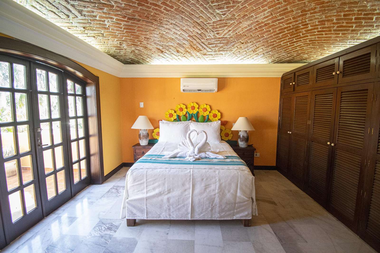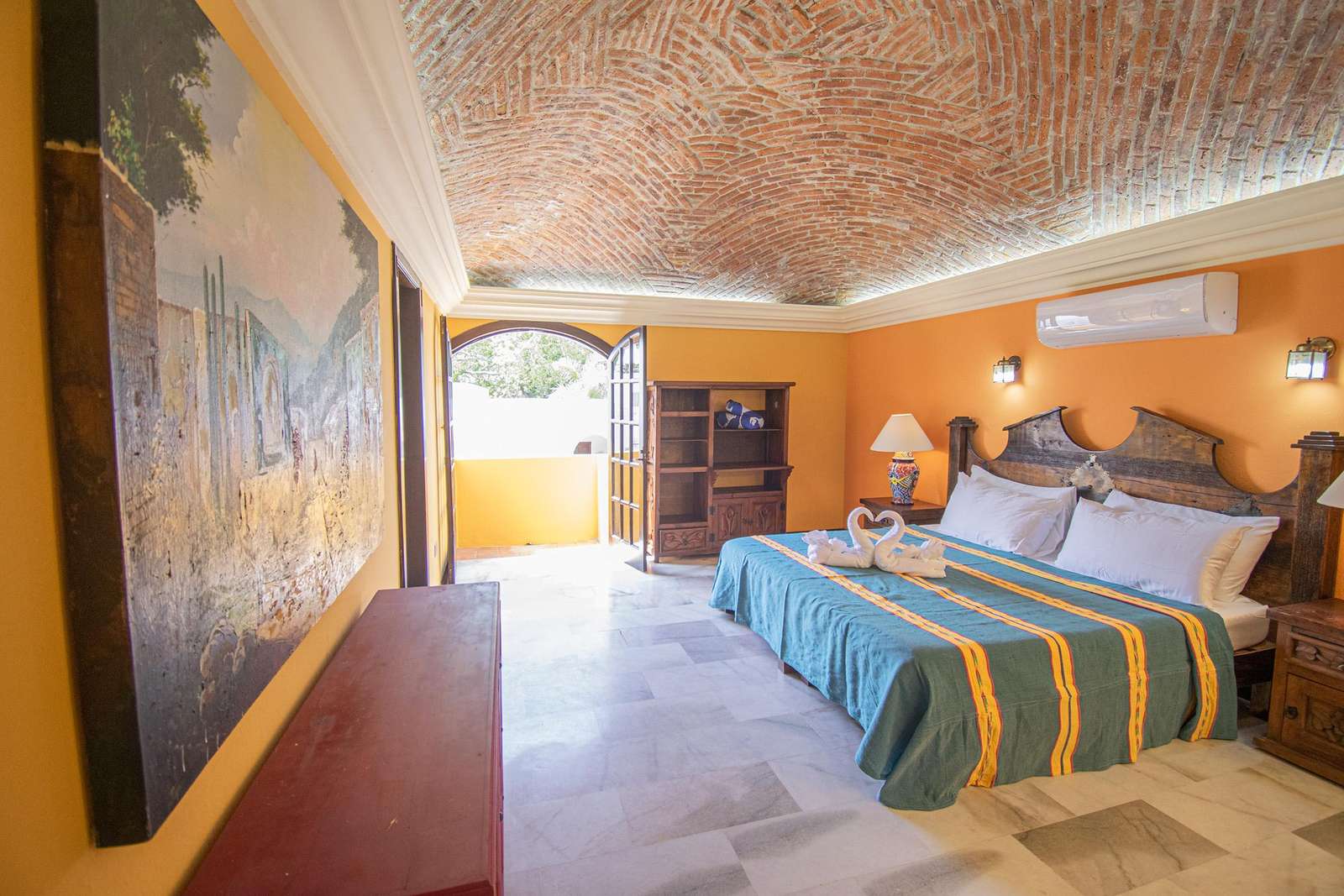 Four bedrooms, along with 3.5 bathrooms bathrooms, accommodate up to 8 guests at Hacienda Conde de Oviedo. Children are welcome. The Master bedroom includes an en-suite bathroom, air conditioning and terrace access.